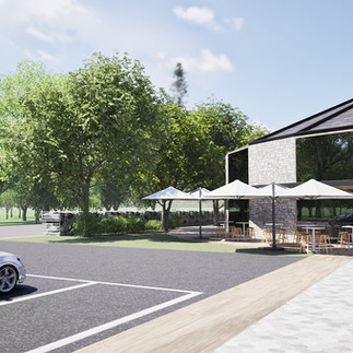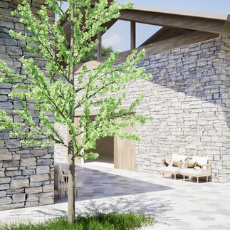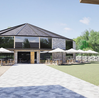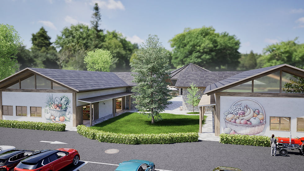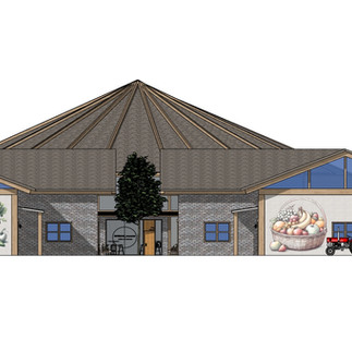 自然素材を活かした石積みの壁と、温かみのある木材が調和した道の駅。壁面に描かれた瑞々しい農産物のイラストがお客様をお出迎え。中庭を抜けた先には、ガラス張りの八角形レストランを併設し、地元の新鮮な食材を使った料理を提供。人々が集い、地域の魅力を満喫できる空間としてデザイン提案しました。