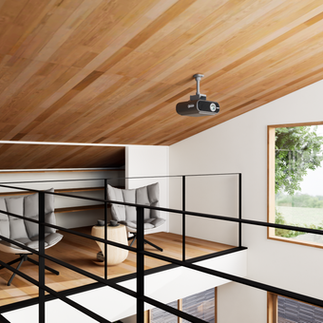 大きな吹き抜けと高窓から明るい光が降り注ぐ、開放感あふれるリビングがご家族を迎えます。天井や床に用いた無垢材が空間に温かみと安らぎを与え、屋外とのつながりを感じさせます。2階ホールにはプロジェクターを設置し、壁をスクリーンとして活用するシアタースペースを実現。デザインと機能性を両立させた、こだわりが詰まった一邸です。